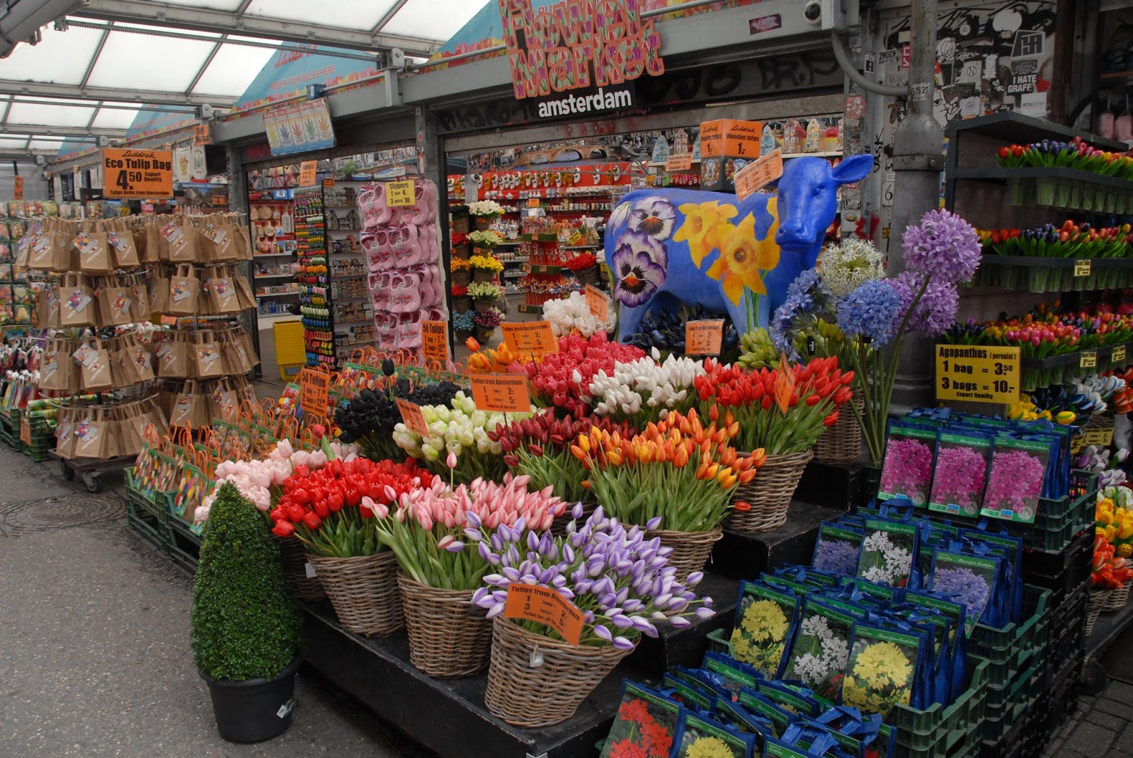 We went a little further, down Rokin (the continuation of Damrak beyond Dam Square), until we came to the Bloemenmarkt, which is a permanent fixture, the world's only floating flower market on the Singel (one of the many canals) between Rokin and Koningsplein. Today it mainly sells tulip bulbs and blooms, and souvenirs. We bought some bulbs for our Scottish friends, and would have loved to get some for ourselves but the Australian quarantine regulations would not have allowed us to take them home!